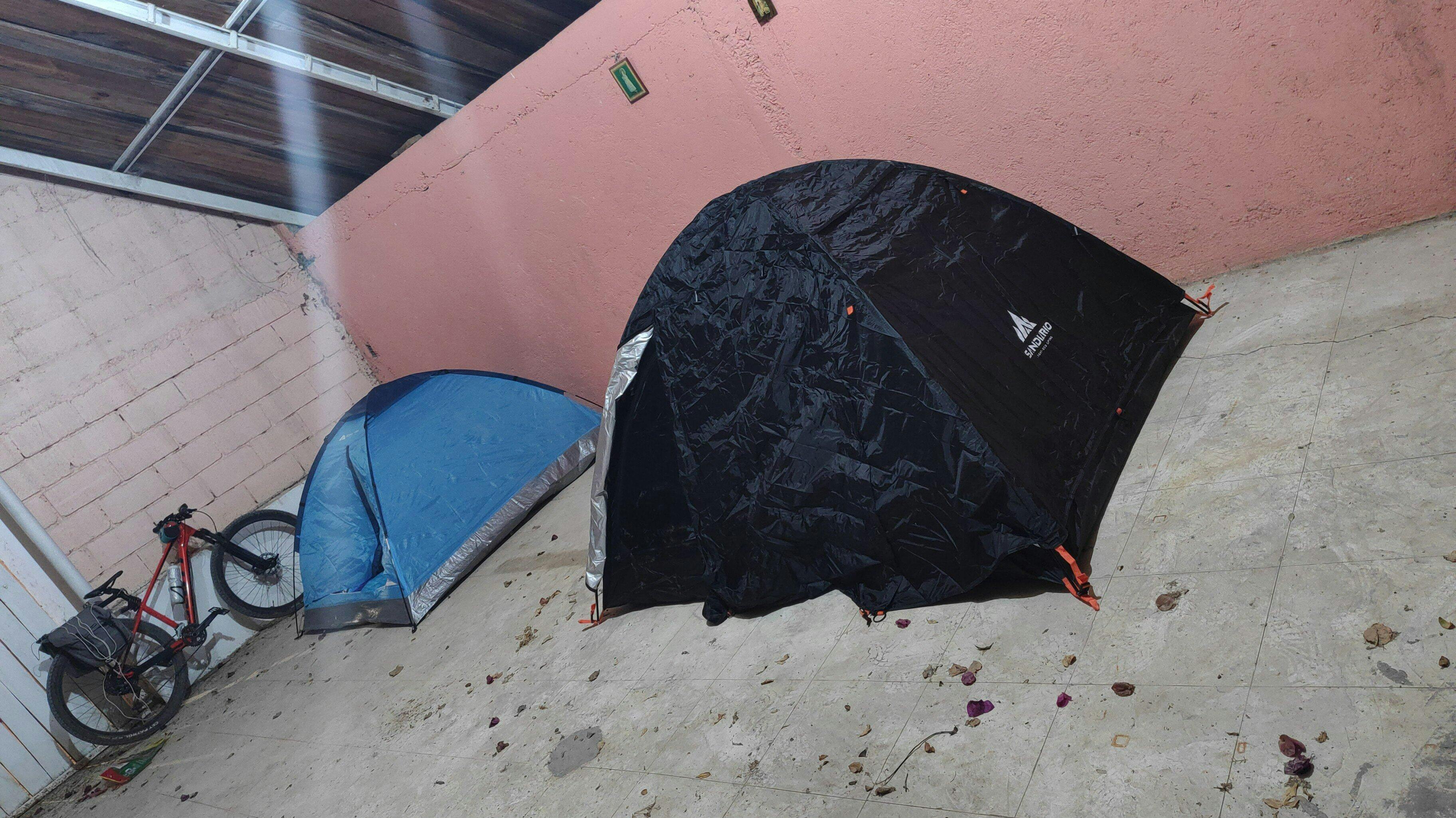 Hay un espacio amplio en la carpa para dos personas, puedes llevar un niño o una mascota más.